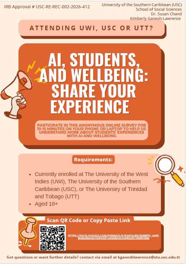 Undergraduate students attending UWI and UTT (no older than 25 years old) can participate and will be required to complete two (2) simple questionnaires administered at the beginning and end of the programme.......